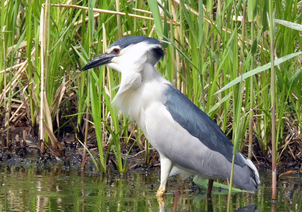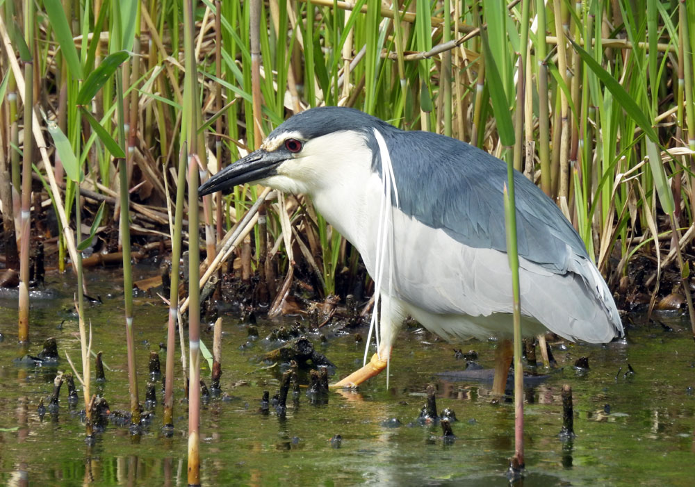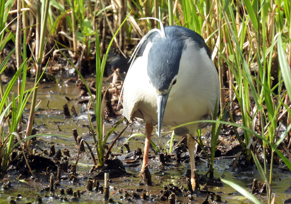 悪戦苦闘のすえに獲物を飲み込んだゴイサギ。一時はクチバシと草をぐるぐる巻きにされて身動きがとれない醜態を晒してしまったにもかかわらず、何事もなかったような涼しい表情を見せるゴイサギさん。