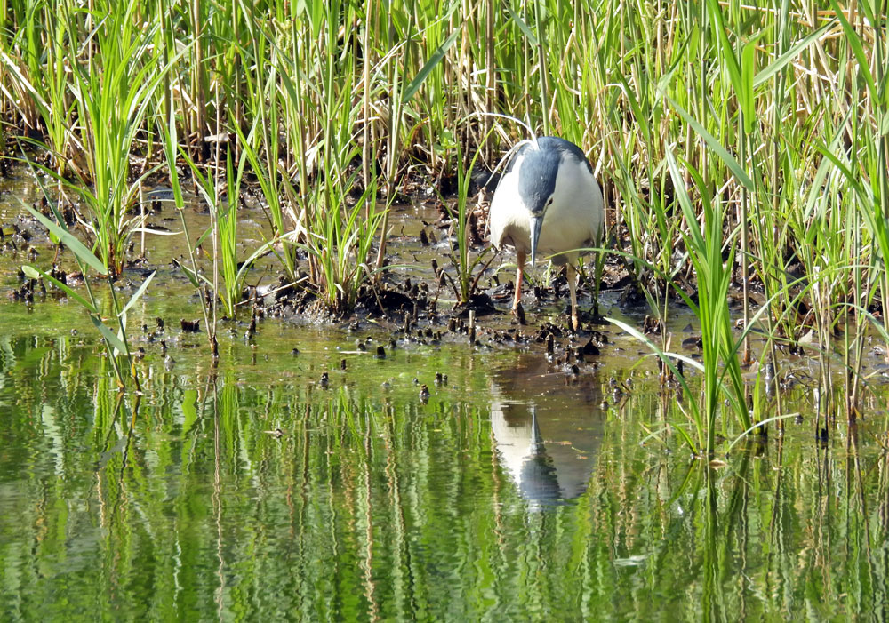 食後の昼寝でもしに寝床に飛び立つのかと思いきや、また次の獲物を探し歩いて行くのでした。食欲旺盛なゴイサギさん。