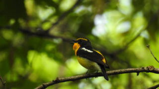 山道を登りながら鳥を探すのは初めてだったので、思った以上に難しかったです。やっとのことで撮影できたのはキビタキでした。