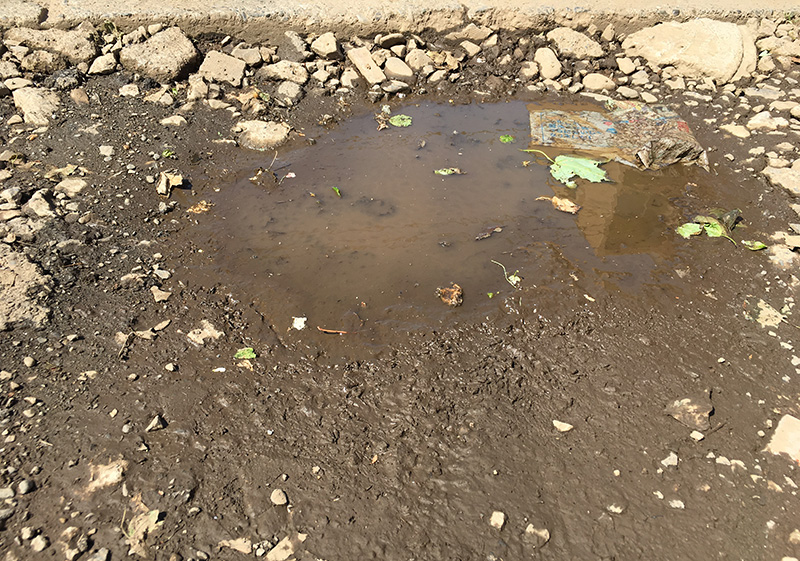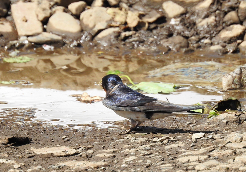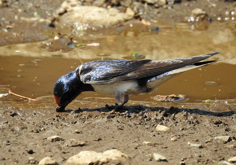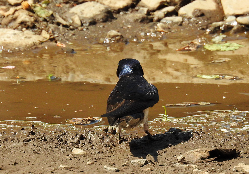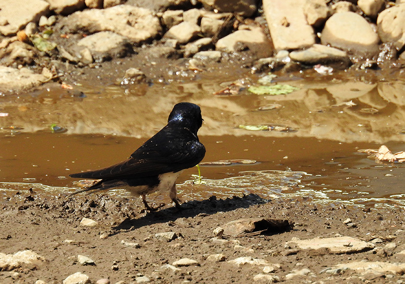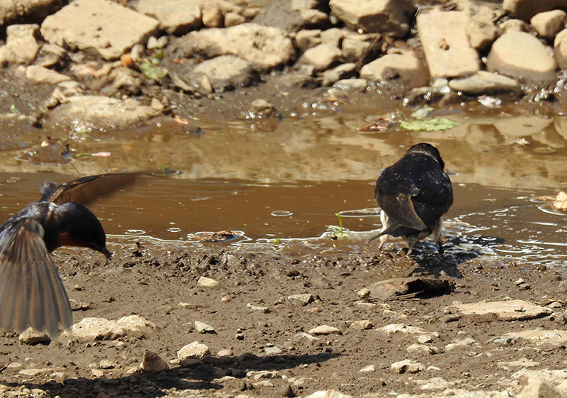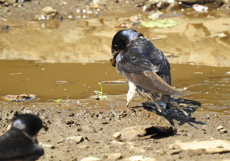 こんなちょっとした水たまりの泥でも巣材に使えるんですねえ。