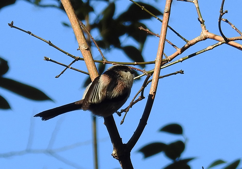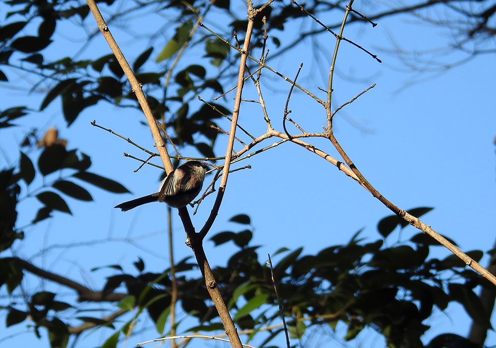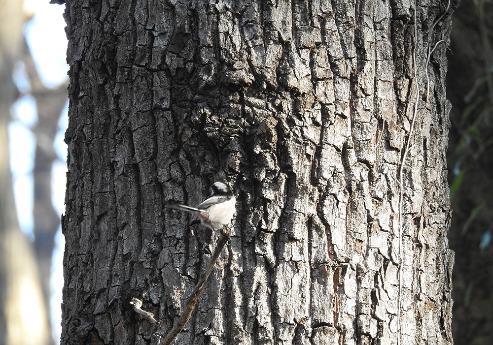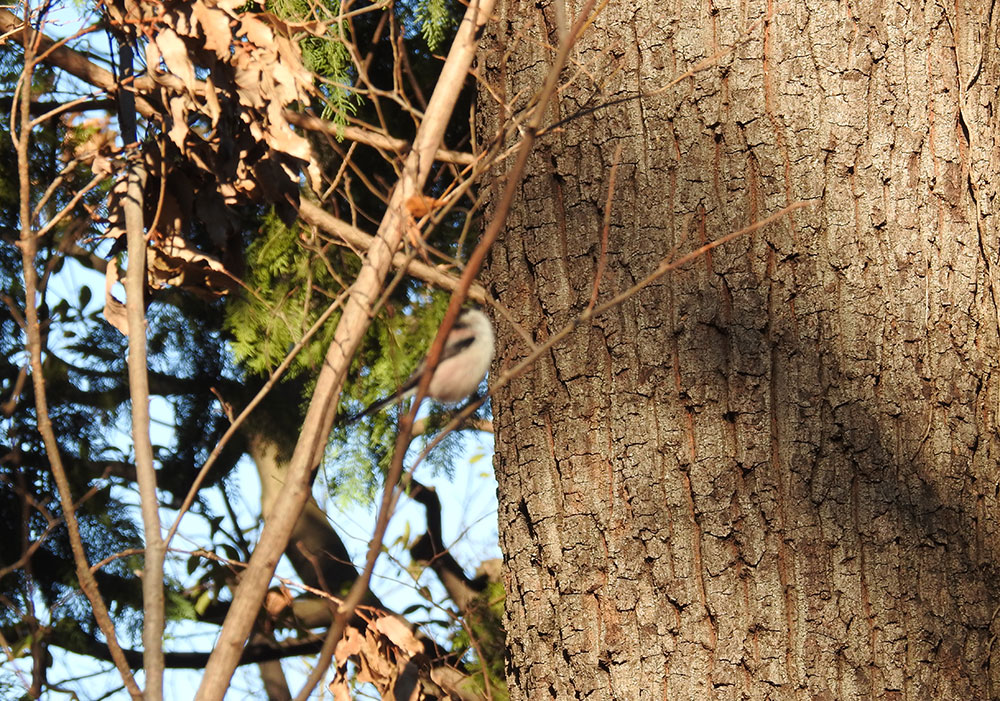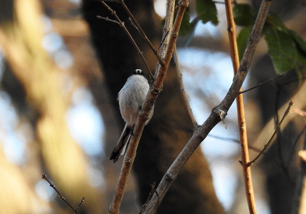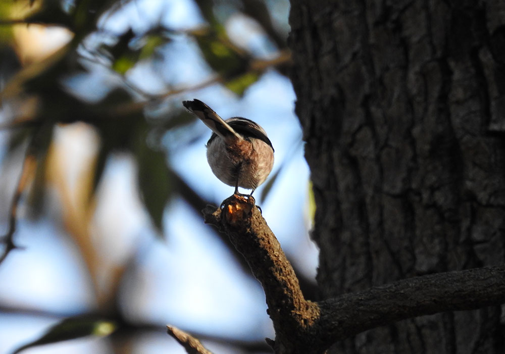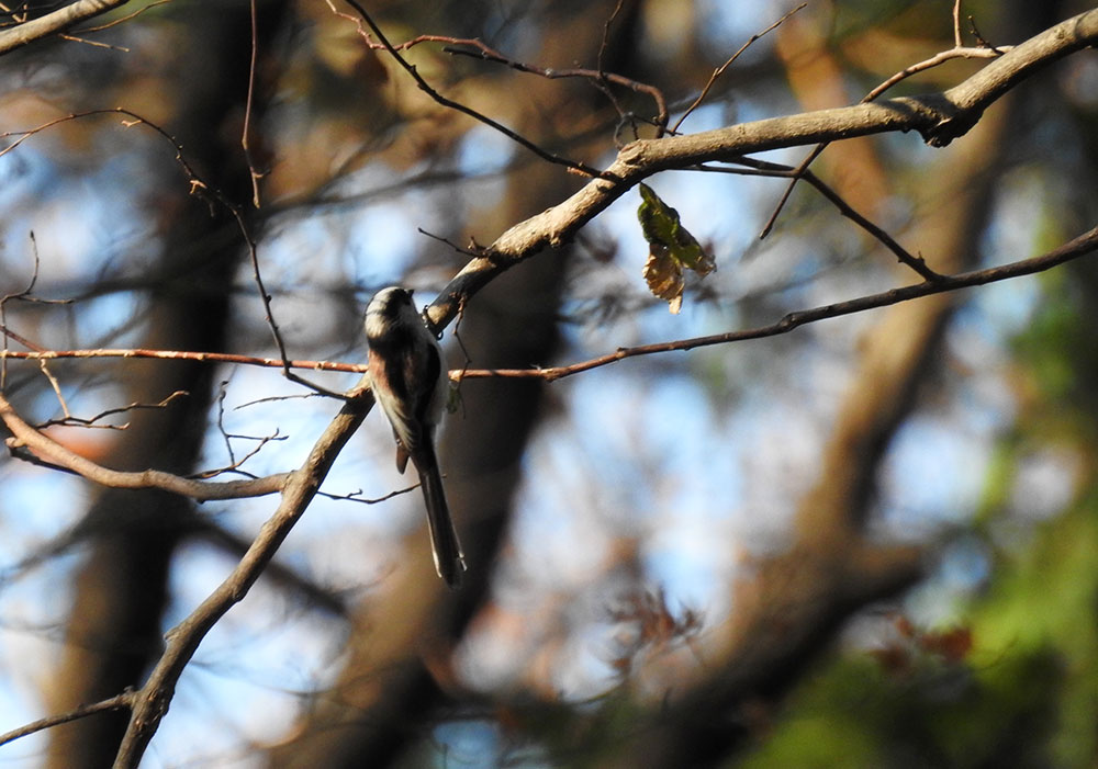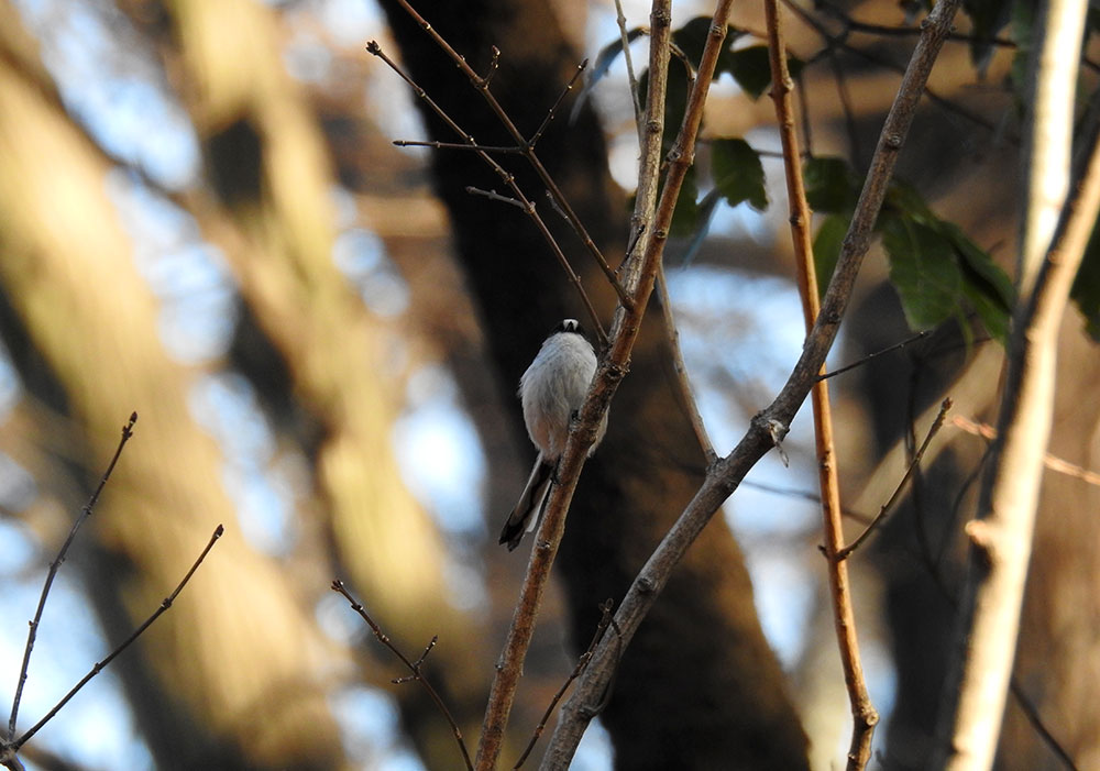 エナガの背中。エナガって面白い模様してますよねえ。