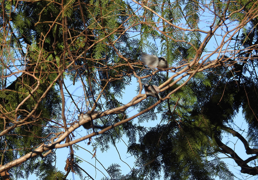 3羽くらい写ってますが見事に全部ブレてますねw エナガはとにかくちょこまかと動き回るので、シャッタースピードが足りません。